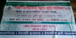 শহীদ লিয়াকত স্মৃতি বৃত্তি পরীক্ষা’১৫ আগামী ১৮ই ডিসেম্বর শুক্রবার সকাল ৯টা হতে ১২টা পর্যন্ত সারাদেশে একযোগে অনুষ্ঠিত হবে।